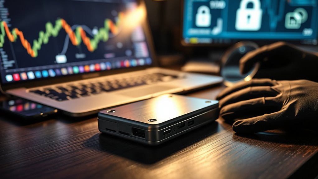 To protect yourself, adopt robust security measures. Blockchain analytics tools help track suspicious transactions, while stricter KYC regulations aim to prevent identity theft. Regularly updating your software and hardware reduces vulnerabilities, and enabling two-factor authentication adds an extra layer of security. Using cold storage offline wallets ensures your crypto remains safe from online hacks. Staying vigilant and educated about current scams can help you recognize warning signs before falling victim. Law enforcement agencies and regulatory bodies are working tirelessly to develop stricter rules and international cooperation to trace stolen funds. AI advancements are also improving scam detection, analyzing transaction patterns and identifying anomalies early. Implementing these defenses and staying informed can considerably reduce your risk, helping you safeguard your crypto IRA against the rapidly evolving threats in the digital currency space. [Understanding these threats and implementing proactive security measures is crucial for protecting your investments.