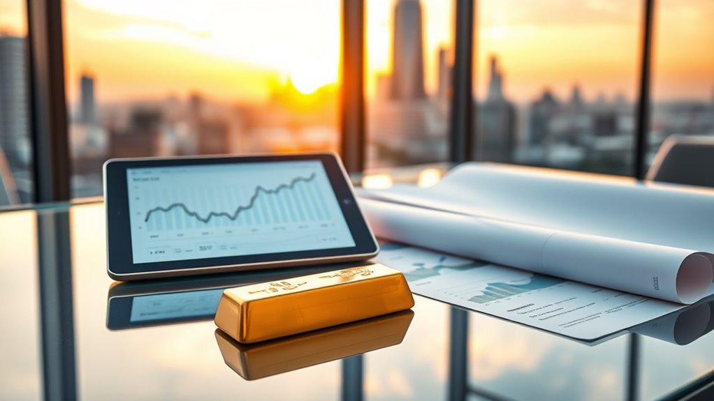Future economic trends could considerably change gold’s role in your portfolio. If inflation rises or economic uncertainty increases, you might see gold acting as a safe haven, boosting its importance. Conversely, if interest rates climb or the economy stabilizes, gold could lose some appeal. Stay alert to geopolitical shifts and monetary policies, as they influence gold prices and your investment’s resilience.