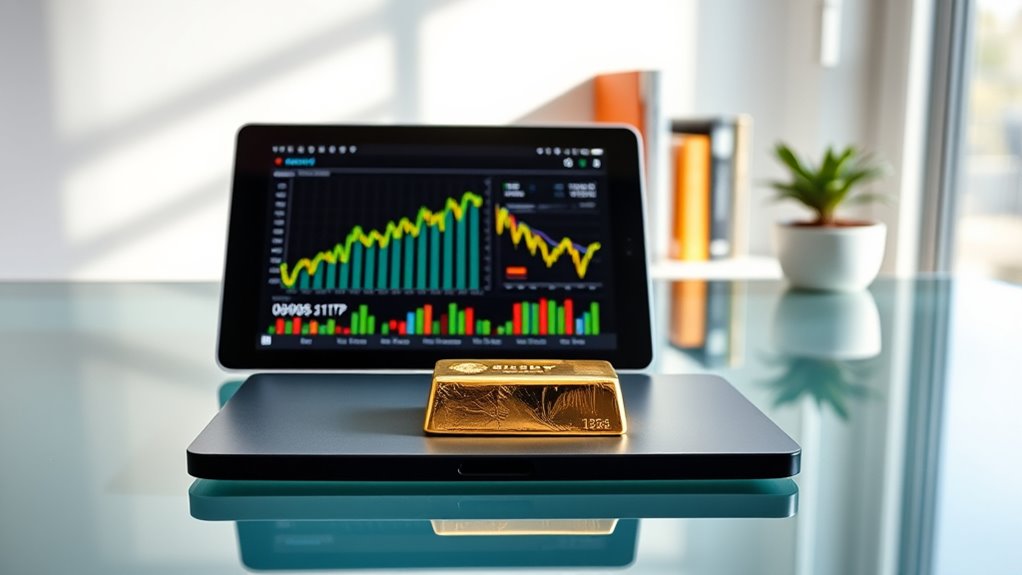 Holding gold in your Roth IRA can reduce liquidity because physical gold isn’t as easy to sell quickly as cash or stocks. You might face delays or need to find a specialized dealer, which can limit immediate access to funds. However, if you’re prepared for these challenges, gold offers diversification and long-term growth potential. Just remember, selling gold may involve fees and market fluctuations that could impact your ability to access cash swiftly.