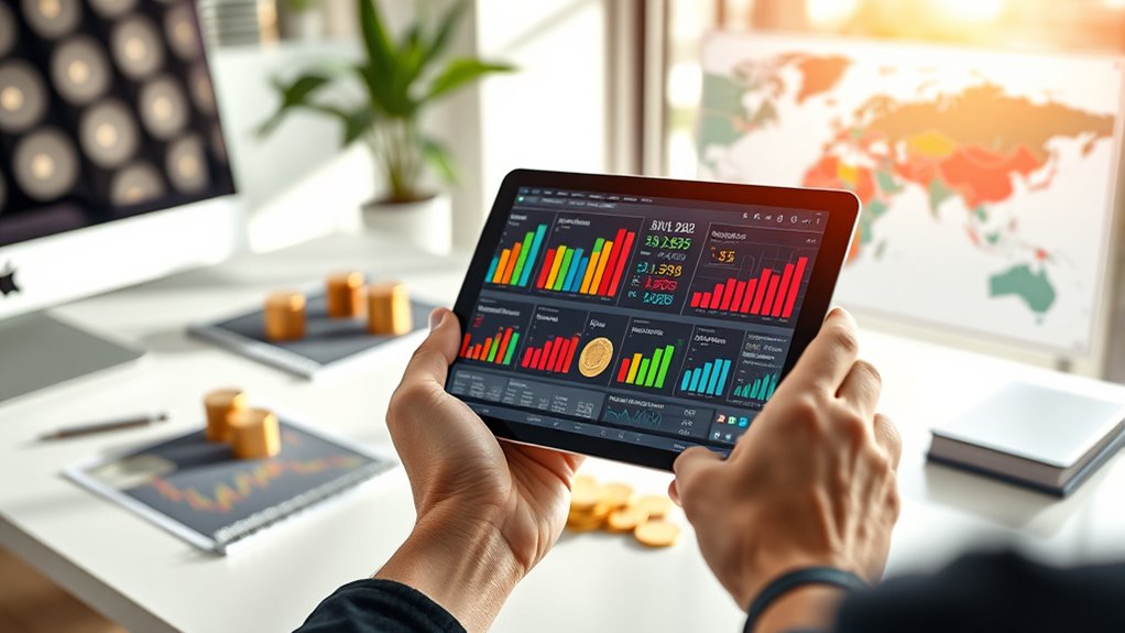 Regarding tax treatment, commodities held inside an IRA enjoy tax advantages, as distributions generally remain tax-deferred or tax-free until withdrawal, depending on the account type. When held outside a tax-advantaged account, commodity funds often distribute capital gains and income annually, which are taxed as ordinary income or capital gains. But in an IRA, these distributions are sheltered from taxes until you take withdrawals, making commodities a potentially efficient way to grow your retirement savings. That said, some commodity ETFs and mutual funds issue complex tax documents like Schedule K-1 or Form 1099, requiring professional tax advice to guarantee accurate reporting. The structure of the ETF—whether it holds physical commodities or uses futures contracts—also influences your tax obligations, especially considering UBTI rules that may apply to certain alternative investments.