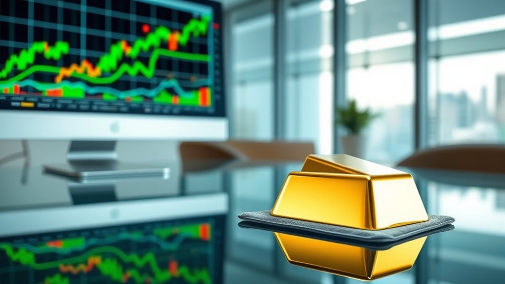 From a strategic standpoint, maintaining a modest allocation of gold—say 5% to 15%—can markedly enhance your portfolio’s resilience. Gold’s low correlation with other assets means it offers diversification benefits, helping to smooth out returns over time. As economic conditions shift, adjusting your gold holdings can further optimize your portfolio. Ultimately, integrating gold alongside growth stocks ensures you’re not overly dependent on the performance of equities alone, creating a balanced approach that aligns with long-term wealth preservation and growth goals.