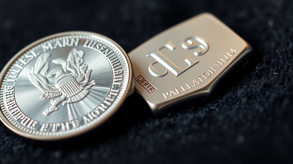 You might find platinum and palladium less liquid than stocks or bonds, but they still offer decent market access. Their prices can swing sharply, especially during economic shifts, making quick sales trickier. However, with specialized dealers and platforms, you can often convert your holdings within days. Just remember, their liquidity varies based on market conditions and demand, so plan your investment horizon accordingly for maximum flexibility.