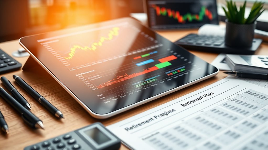 Planning for a secure retirement isn’t just about choosing the right investments; it’s about testing how your portfolio holds up under stress. Stress testing helps you identify potential weaknesses before adverse events threaten your financial security, giving you the chance to make informed adjustments. By simulating various “what-if” scenarios—such as market crashes, soaring inflation, or unexpected health expenses—you gain a clearer picture of how resilient your plan really is. This proactive approach allows you to see where your portfolio might fall short and determine the steps needed to bolster its defenses. It’s not a one-time task but an ongoing process that adapts to changing market conditions and your personal circumstances, guaranteeing your retirement plan remains robust over time. Stress testing can also help you understand your portfolio’s vulnerability to sequence-of-returns risk, ensuring you’re better prepared for early market downturns. There are different ways to perform stress tests, each providing unique insights. Monte Carlo simulations, for example, run thousands of hypothetical scenarios by varying returns, inflation rates, spending patterns, and longevity assumptions. This method calculates the probability of your portfolio successfully lasting through retirement, giving you a statistical edge in planning. Historical scenario analysis, on the other hand, tests your portfolio against past crises like the 2008 financial meltdown, helping you understand how it might perform during real-world downturns. Hypothetical scenarios simulate future shocks, such as inflation spikes or interest rate hikes, enabling you to prepare for potential economic shifts. Sequence-of-returns risk testing focuses on how early market declines during retirement can deplete your savings faster, emphasizing the importance of resilience during initial years of withdrawal. Lastly, factor analysis examines sensitivities to interest rates, GDP growth, or currency fluctuations, revealing vulnerabilities tied to macroeconomic changes. The key inputs for these tests include your portfolio’s composition—stocks, bonds, real estate, and other assets—and your planned withdrawal rates. It’s essential to incorporate realistic assumptions about inflation, taxes, and market outlooks, considering your retirement horizon and life expectancy. Additionally, understanding market volatility helps you grasp how sudden fluctuations can impact your plans. Emergency reserves and liquidity are also indispensable, ensuring you can cover unexpected expenses without forced asset sales. The outputs from stress tests include metrics like the probability of success—how likely your portfolio will last—and the maximum drawdown, which shows the worst-case loss during stressful periods. Recovery time estimates reveal how long it might take to regain lost ground, while liquidity analysis assesses your ability to access funds when needed. The fundedness ratio compares your current assets with projected withdrawals, offering a snapshot of your plan’s sustainability. Stress tests often reveal common weaknesses, such as overexposure to a single asset class, insufficient liquidity, or inadequate protection against inflation. They might also uncover hidden correlations that diminish diversification benefits or highlight the risk of early-market declines depleting your savings faster. To mitigate these vulnerabilities, you can diversify across asset classes and geographies, adopt a flexible withdrawal strategy, and adjust your allocations based on stress test results. Regular rebalancing and proactive adjustments ensure your retirement plan stays aligned with your evolving financial landscape. Ultimately, stress testing empowers you to build a resilient, adaptable plan that withstands market shocks and secures your retirement future.