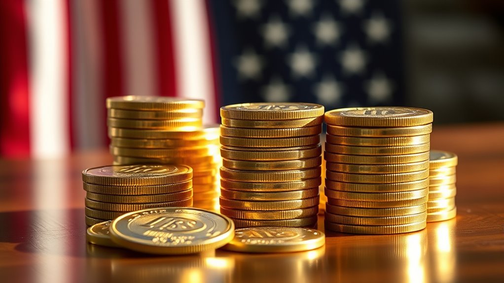 Lastly, choosing the right metals and providers is vital. Purchasing disallowed collectibles or metals that don’t meet purity standards can result in immediate taxable distributions, taxed as ordinary income, and possibly a 10% early withdrawal penalty if you’re under 59½. To avoid these issues, stick with IRS-approved coins and bars, and work with reputable providers like Augusta Precious Metals, Goldco, or Birch Gold Group, who offer education, insured storage, and compliant custodial services. Proper selection and documentation are your best defenses against unintentional tax events, helping you build a compliant and valuable Gold IRA for your future.