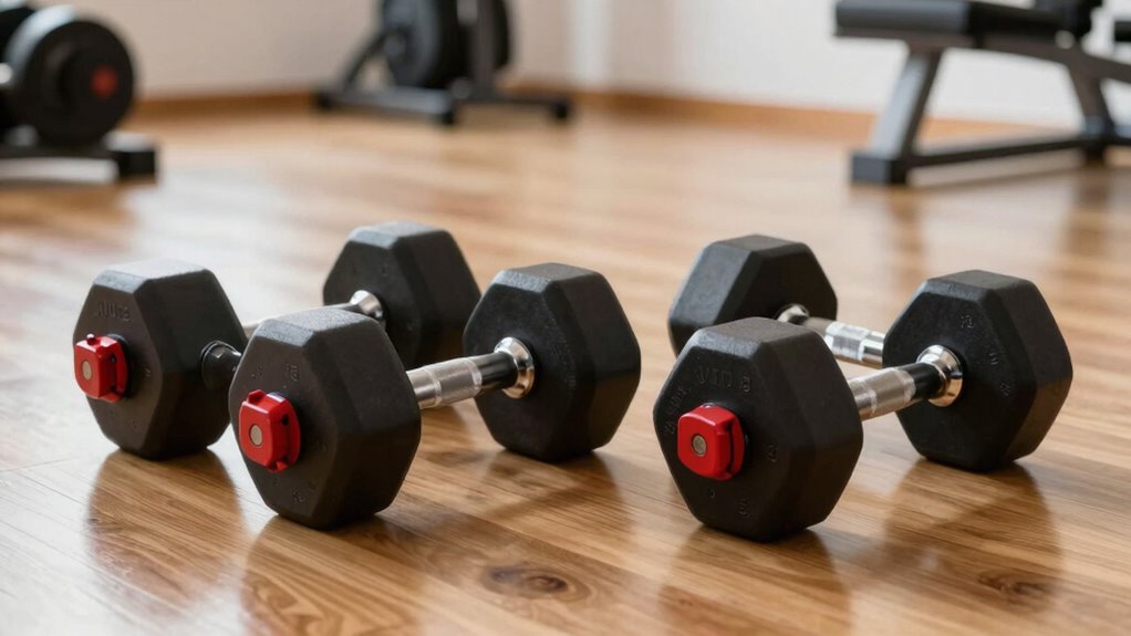 Did you know that over 80% of fitness equipment warranties cover mechanical failures? I’ve found that most adjustable dumbbells come with a manufacturer’s warranty, typically ranging from one to three years. I recommend checking the warranty details before purchasing. This way, if you encounter mechanical issues, you’re protected. It’s reassuring to know that reliable brands stand behind their products, giving you peace of mind during your workouts.