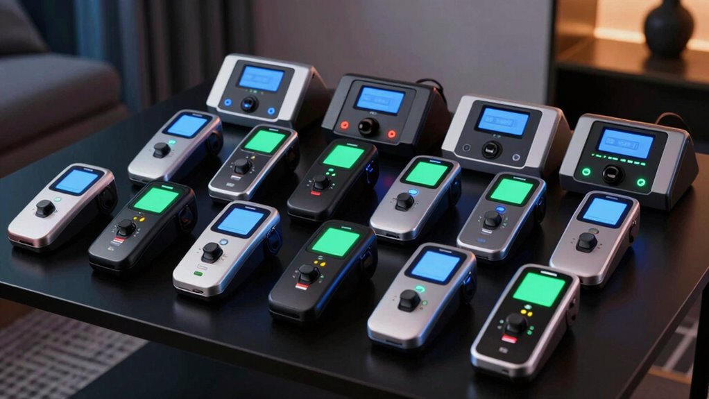 When choosing a counterfeit bill detector for home use, the power supply options can considerably impact how convenient and versatile the device is. I consider whether I prefer battery power, AC adapters, or USB connections based on my mobility needs. Battery-powered models are great for portability, especially if I need to move the device around or use it in places without outlets. Rechargeable batteries add convenience by reducing the need for frequent replacements. Some detectors offer dual power options, combining rechargeable batteries with AC adapters, giving me flexibility in different environments. Additionally, power management features like automatic sleep mode or on/off sensors help extend battery life and save energy. Ultimately, choosing the right power supply ensures my detector is reliable, easy to use, and suitable for various situations.