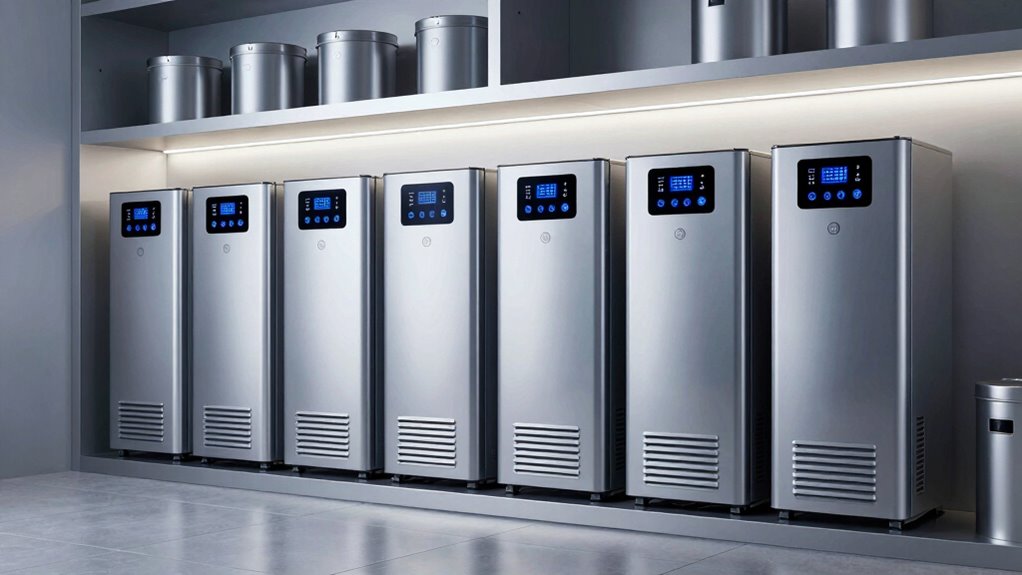 Since silver storage rooms often require a quiet environment to protect valuable items, noise levels from a dehumidifier are a key consideration. Ideally, these units should operate around 35-40 dB to prevent disturbance. Lower decibel ratings mean quieter operation, which is vital in sensitive storage spaces. Many advanced dehumidifiers feature noise-reduction technology, vibration dampening, and silent modes that help minimize sound during operation. Excessive noise can disrupt the peaceful environment necessary for preserving silver and other valuables. Choosing a dehumidifier with a noise level under 40 dB ensures discreet operation, maintaining the room’s quiet ambiance. This helps protect the integrity of your storage environment, preventing noise from becoming a distraction or causing unnecessary concern.