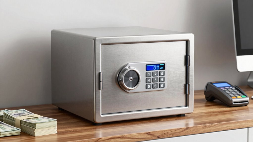 When choosing a deposit safe, I focus on security features that protect my cash and guarantee peace of mind. I also consider the safe’s size and how easily I can access it, along with how it can be securely mounted. Finally, I look at the variety of locking mechanisms to find one that best fits my needs.