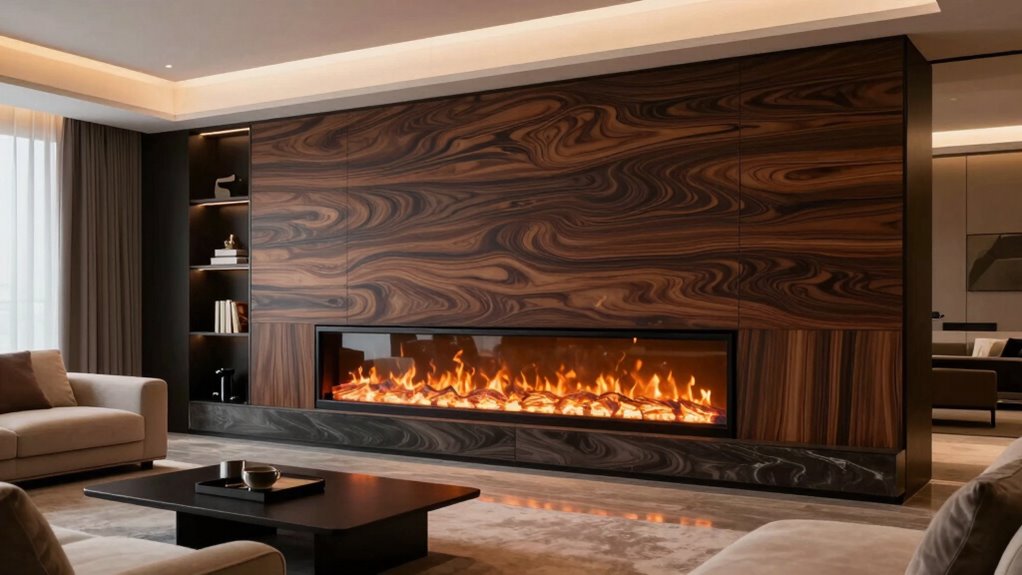 Back in the day, integrating electric fireplaces into existing large TV units was a bit tricky, but now it’s quite doable. I’ve seen many custom solutions where the fireplace seamlessly fits into the unit, enhancing both style and warmth. You just need to make certain proper ventilation and compatibility. With some careful planning, you can enjoy a cozy fire feature without sacrificing your TV setup’s sleek look.