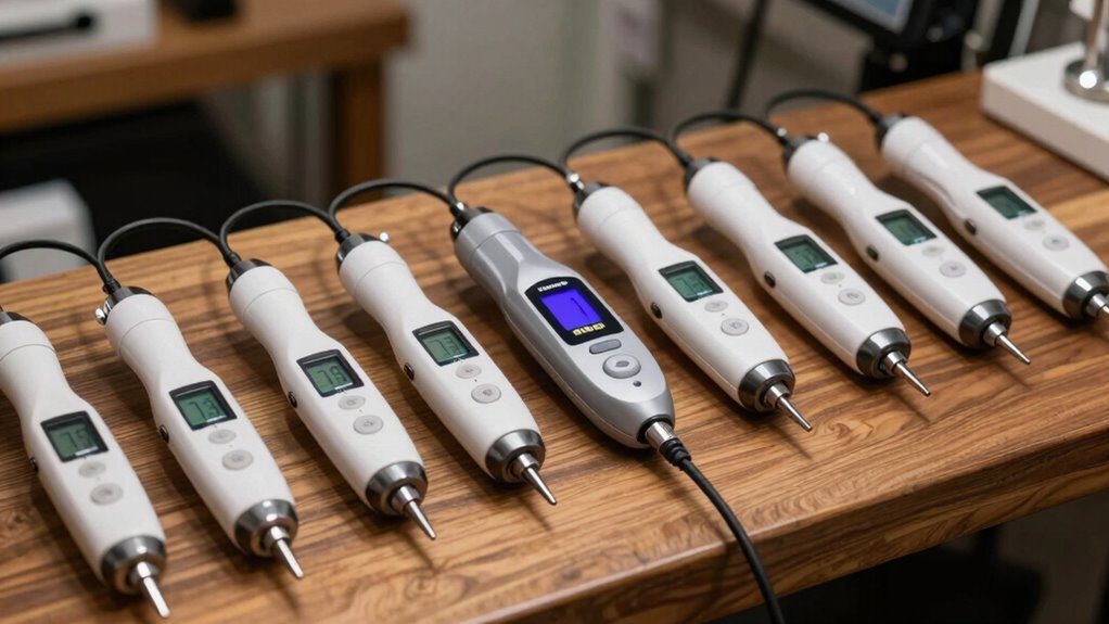 When selecting an electronic tester for estate jewelry, I focus on accuracy and ease of use to guarantee reliable results without hassle. I also consider the metal compatibility range to cover various jewelry types and the device’s portability for convenience. Speed and size matter too, so I can test efficiently and easily store the tool when not in use.