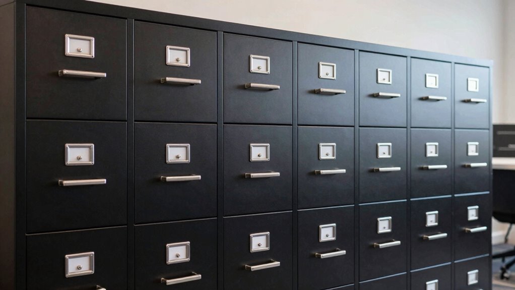 Selecting the right locking mechanism for a heavy-duty filing cabinet depends on your security needs and how you plan to use the cabinet. Mechanical locks, like cam and key locks, are reliable and straightforward, offering solid security for most applications. If you need advanced features, electronic or digital locks provide options like code access and audit trails, ideal for high-security environments. Interlocking mechanisms are also worth considering, as they prevent more than one drawer from opening at once, reducing tipping risks and increasing safety. Some cabinets feature keyed locks that secure all drawers with a single key, simplifying access. Ultimately, your choice impacts ease of use, security level, and installation complexity, so consider your specific needs carefully before making a decision.