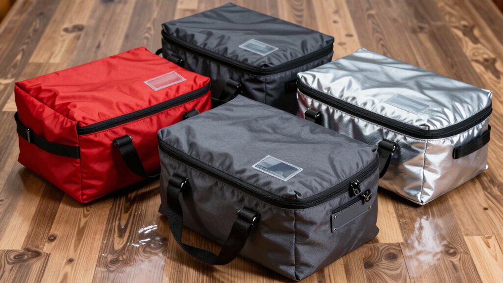 Fireproof bags resist high temperatures by using specialized materials like aluminized fiberglass or silicone-coated fabrics that reflect heat and prevent flames from penetrating. These materials are designed to withstand extreme temperatures, often up to 1,200°F or more, by maintaining their integrity and insulating contents inside. I trust these bags to protect my important documents because they’re engineered to endure intense fires and keep my valuables safe during emergencies.