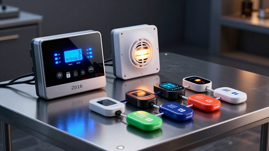 These safes detect fire and burglary simultaneously by combining sensors like smoke detectors and motion sensors. When smoke is detected, an alarm activates to alert you of fire. If someone tries to break in, motion sensors trigger an alarm for burglary. The system’s integrated electronics coordinate these alerts, ensuring you’re notified immediately of either threat. I find this dual protection system reassuring and highly effective for safeguarding valuables.