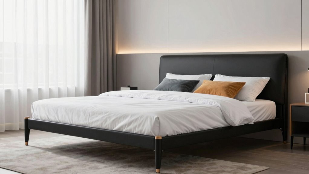 Choosing the right adjustable bed frame means considering the compatibility of your mattress to guarantee smooth operation and comfort. It’s crucial to verify the frame supports various mattress types like memory foam, latex, hybrid, or innerspring, depending on your preference. Check the maximum mattress thickness supported to avoid fit issues or reduced functionality. Also, confirm that the frame’s dimensions and design match your mattress size, whether Queen, King, or Twin XL. The articulation and wall-hugger mechanism shouldn’t interfere with your mattress’s compatibility, so verify this with manufacturer guidelines or compatibility charts. Ultimately, selecting a frame that aligns with your mattress type, thickness, and size ensures optimal performance and comfort, making your investment worthwhile.