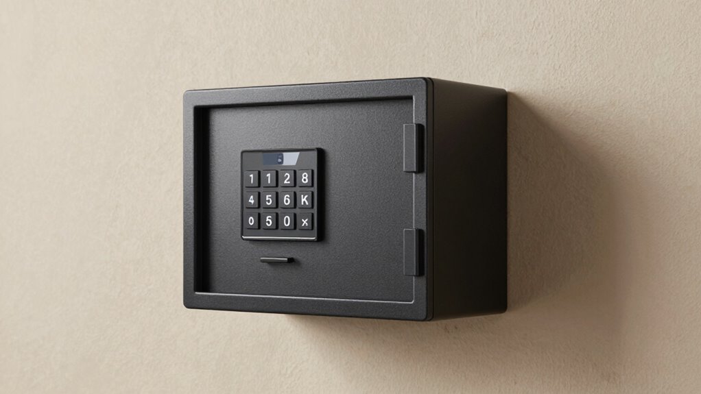 The type of locking mechanism you choose for a wall-mounted safe considerably affects both its security and ease of access. Key locks are simple and don’t require batteries, but they can be picked or lost. Combination locks provide a mechanical solution that’s reliable but may take longer to open. Electronic keypad locks offer quick, keyless access with programmable codes and backup options, boosting security. Biometric fingerprint locks enable fast, keyless entry through fingerprint recognition, making them highly secure against unauthorized access. Keycard systems are also an option, providing quick access with a swipe or tap. Each mechanism has its pros and cons, impacting how secure your valuables are, how convenient it is to open the safe, and whether it suits your specific needs.