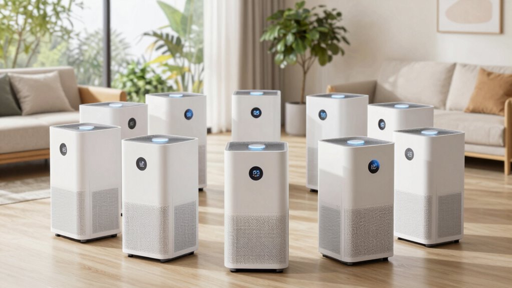When I look for a whole house air purifier with high CADR, I pay close attention to noise levels and sleep mode features, since a quiet environment is vital for restful sleep. Most units operate between 15 to 30 dB in sleep mode, ensuring minimal disturbance. Many models include sleep or quiet modes that automatically lower fan speeds and dim indicator lights, helping create a peaceful atmosphere. Some purifiers even mimic white noise or gentle wind sounds to promote better sleep quality. Adjustable fan speed settings give me control over noise output, allowing a balance between purification efficiency and comfort. Well-designed sleep modes ensure the purifier runs effectively without disrupting my sleep patterns, making them an essential factor in my decision-making process.